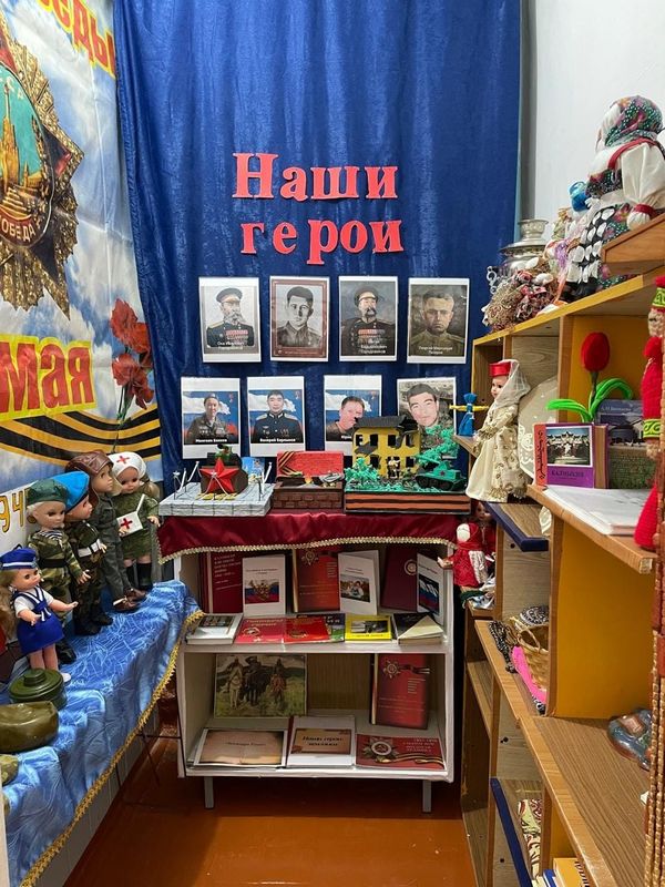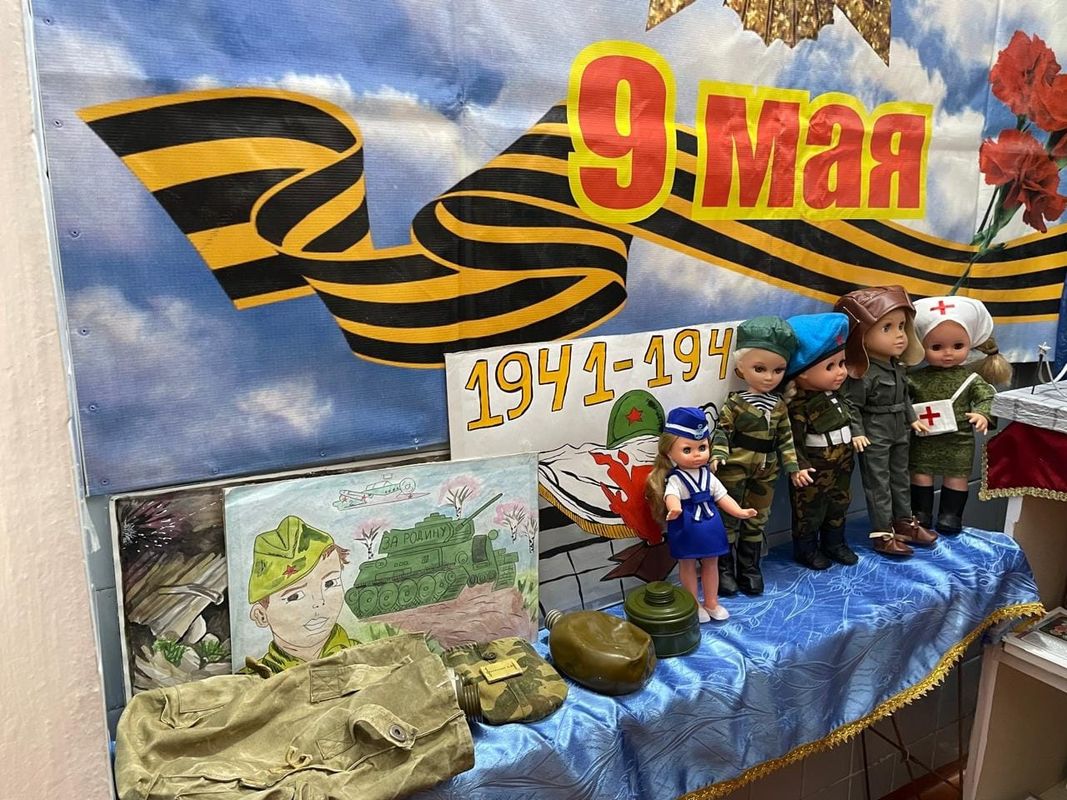 В преддверии 80-летней годовщины Победы нашего народа в Великой Отечественной войне, в нашем саду был открыт музей, в котором размещены инсталляции, экспонаты, фотографии героев той страшной войны и героев СВО. В нем так же размещены предметы ыта народов, проживающих на территории нашей республики. Особую любовь и интерес вызывают у детей куклы( в военной форме, куклы в национнальных костюмах, куклы - обереги, веснянки, кувадки)выполненные руками наших коллег,детей, родителей